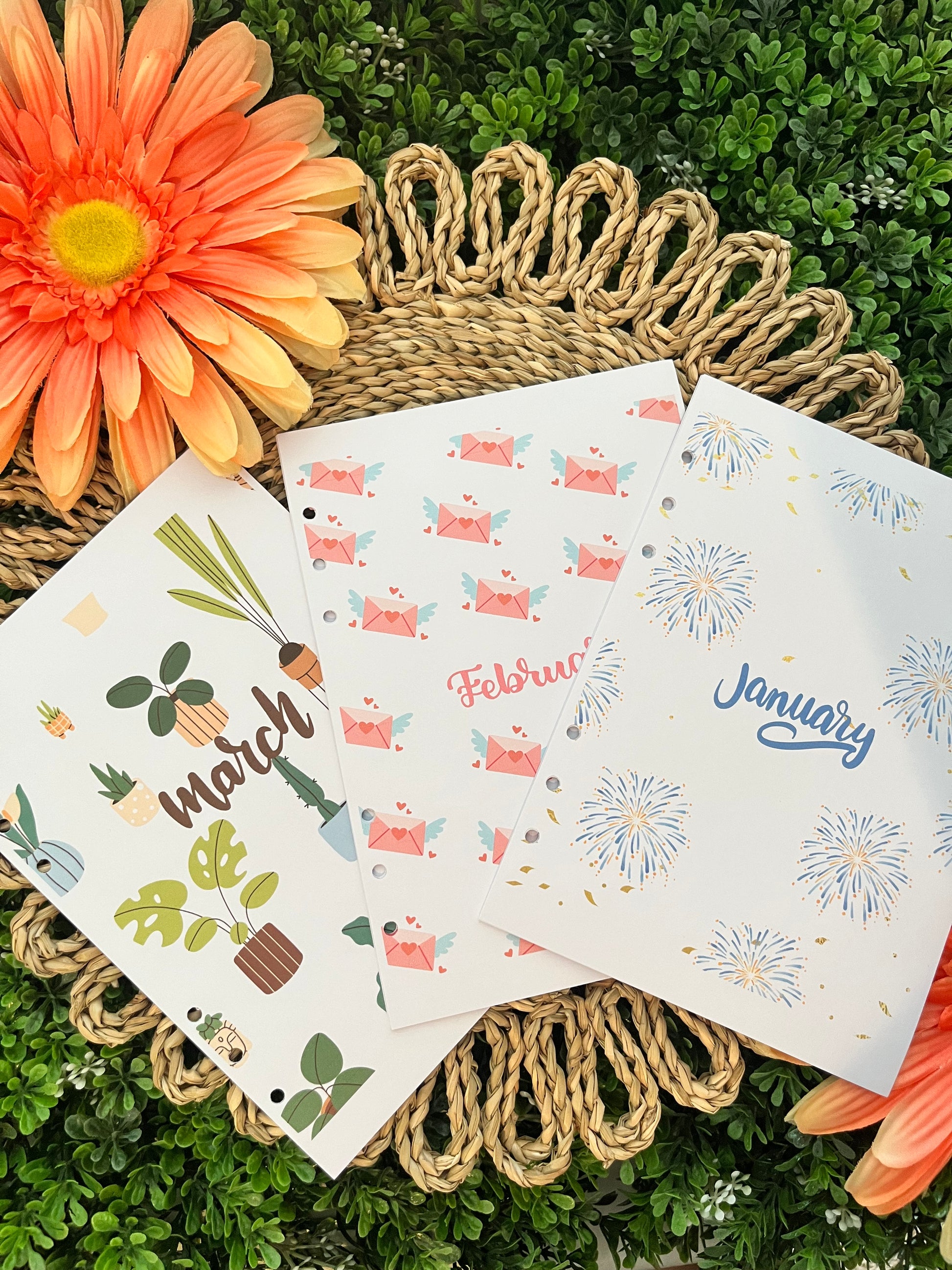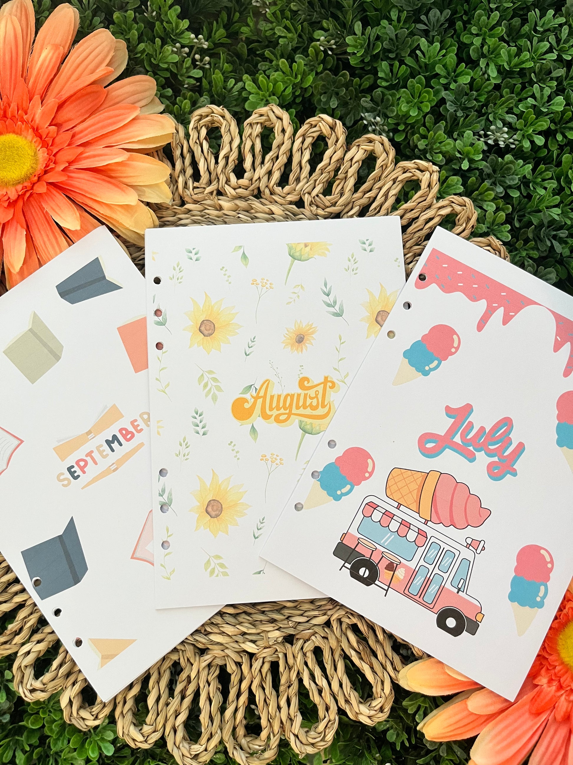 All pages are hole punched to fit inside of a 6 ring binder available on my website.