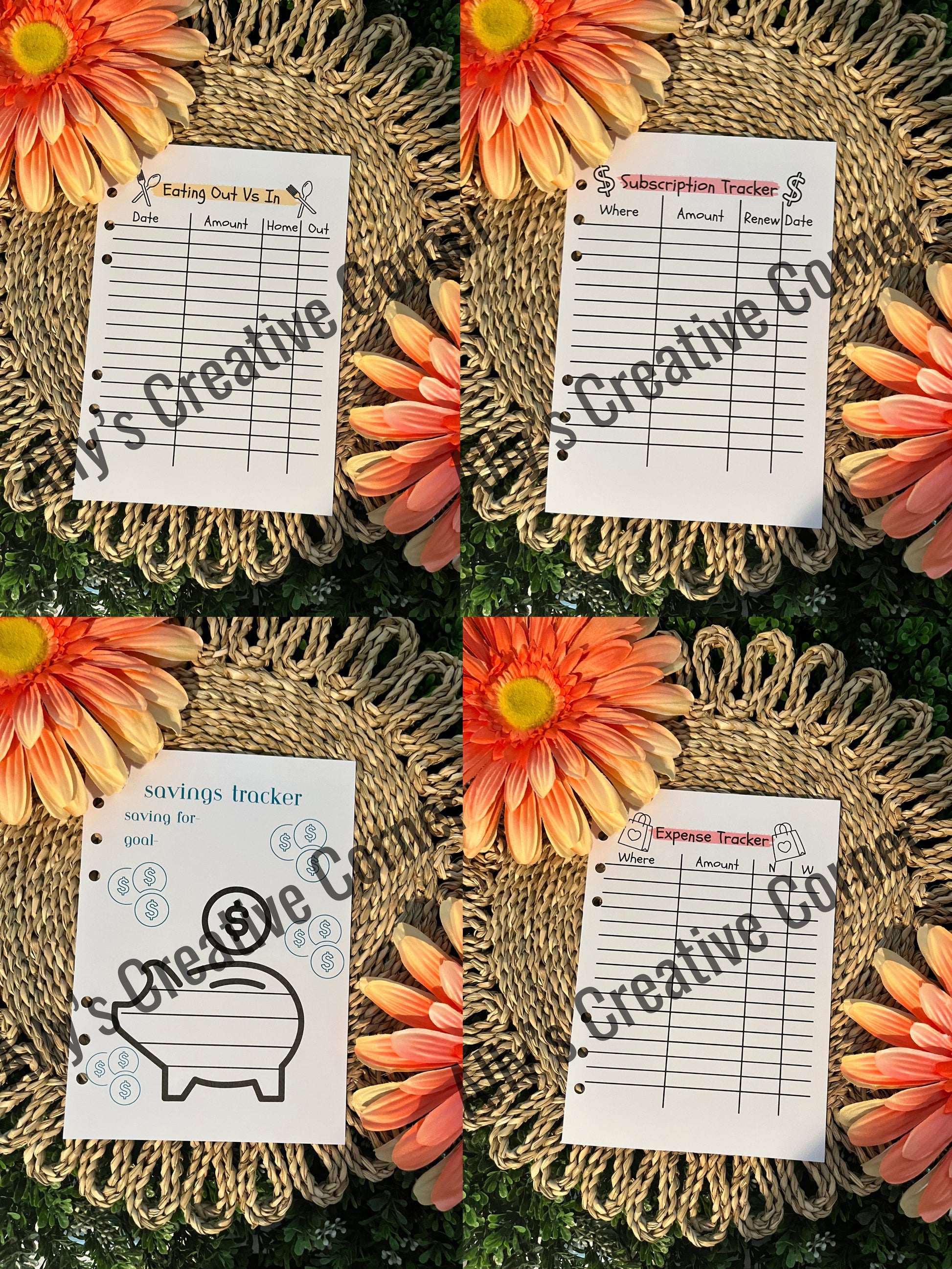 All pages are hole punched to fit inside of a 6 ring binder available on my website.